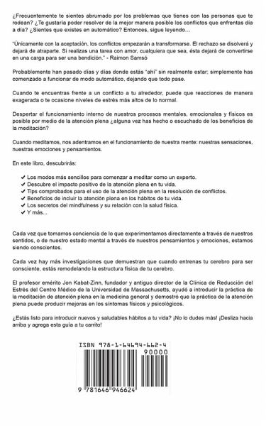 ¿Frecuentemente te sientes abrumado por los problemas que tienes con las personas que te rodean? ¿Te gustaría poder resolver de la mejor manera posible los conflictos que enfrentas día a día? ¿Sientes que existes en automático? Entonces, sigue leyendo... "Únicamente con la aceptación, los conflictos empezarán a transformarse. El rechazo se disolverá y dejará de atraparte. Si realizas una tarea con amor, cualquiera que sea, ésta dejará de convertirse en una carga para ser una bendición." - Raimon Samsó Probablemente han pasado días y días donde estás "ahí" sin realmente estar; simplemente has comenzado a funcionar de modo automático, dejando que todo pase. Cuando te encuentras frente a un conflicto a tu alrededor, puede que reacciones de manera exagerada o te ocasione niveles de estrés más altos de lo normal. Despertar el funcionamiento interno de nuestros procesos mentales, emocionales y físicos es posible por medio de la atención plena ¿alguna vez has hecho o escuchado de los beneficios de la meditación? Cuando meditamos, nos adentramos en el funcionamiento de nuestra mente: nuestras sensaciones, nuestras emociones y pensamientos. En este libro, descubrirás: Los modos más sencillos para comenzar a meditar como un experto. Descubre el impacto positivo de la atención plena en tu vida. Tips comprobados para el uso de la atención plena en la resolución de conflictos. Beneficios de incluir la atención plena en los hábitos de tu vida. Y más... ¿Estás listo para introducir nuevos y saludables hábitos a tu vida? ¡No lo dudes más! ¡Desliza hacia arriba y agrega esta guía a tu carrito!
