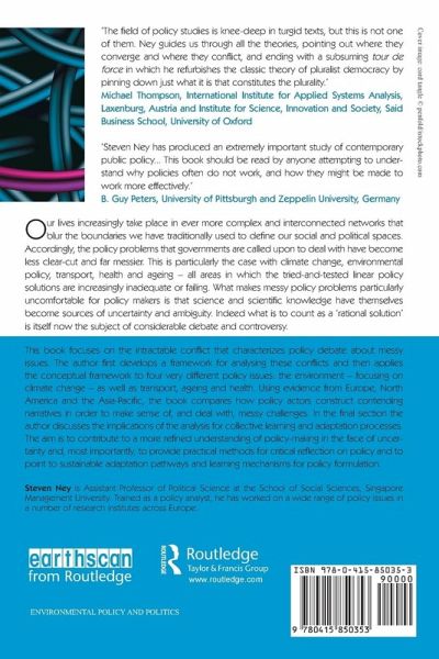 Our lives increasingly take place in ever more complex and interconnected networks that blur the boundaries we have traditionally used to define our social and political spaces. Accordingly, the policy problems that governments are called upon to deal with have become less clear-cut and far messier. This is particularly the case with climate change, environmental policy, transport, health and ageing - all areas in which the tried-and-tested linear policy solutions are increasingly inadequate or failing. What makes messy policy problems particularly uncomfortable for policy makers is that science and scientific knowledge have themselves become sources of uncertainty and ambiguity. Indeed what is to count as a 'rational solution' is itself now the subject of considerable debate and controversy. This book focuses on the intractable conflict that characterises policy debate about messy issues. The author first develops a framework for analysing these conflicts and then applies the conceptual framework to four very different policy issues: the environment - focussing on climate change - as well as transport, ageing and health. Using evidence from Europe, North America and the Asia-Pacific, the book compares how policy actors construct contending narratives in order to make sense of, and deal with, messy challenges. In the final section the author discusses the implications of the analysis for collective learning and adaptation processes. The aim is to contribute to a more refined understanding of policy-making in the face of uncertainty and, most importantly, to provide practical methods for critical reflection on policy and to point to sustainable adaptation pathways and learning mechanisms for policy formulation.