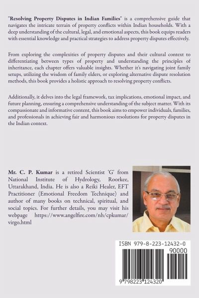 "Resolving Property Disputes in Indian Families" is a comprehensive guide that navigates the intricate terrain of property conflicts within Indian households. With a deep understanding of the cultural, legal, and emotional aspects, this book equips readers with essential knowledge and practical strategies to address property disputes effectively. From exploring the complexities of property disputes and their cultural context to differentiating between types of property and understanding the principles of inheritance, each chapter offers valuable insights. Whether it's navigating joint family setups, utilizing the wisdom of family elders, or exploring alternative dispute resolution methods, this book provides a holistic approach to resolving property conflicts. Additionally, it delves into the legal framework, tax implications, emotional impact, and future planning, ensuring a comprehensive understanding of the subject matter. With its compassionate and informative content, this book aims to empower individuals, families, and professionals in achieving fair and harmonious resolutions for property disputes in the Indian context.