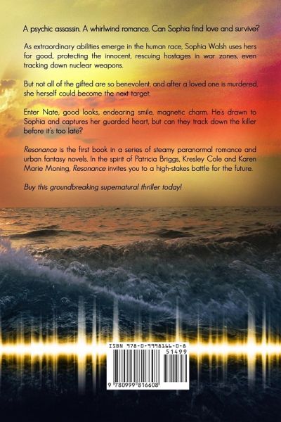 A psychic assassin. A whirlwind romance. Can Sophia survive? As extraordinary abilities emerge in the human race, Sophia Walsh uses hers for good, protecting the innocent, rescuing hostages in war zones, even tracking down nuclear weapons. But not all of the gifted are so benevolent, and after a loved one is murdered, she herself could become the next target. Enter Nate, good looks, endearing smile, magnetic charm. He's drawn to Sophia and captures her guarded heart, but can they track down the killer before it's too late? Resonance is the first book in a series of steamy paranormal romance and urban fantasy novels. In the spirit of Patricia Briggs, Kresley Cole and Karen Marie Moning, Resonance invites you to a high-stakes battle for the future. Buy this groundbreaking supernatural romance today!