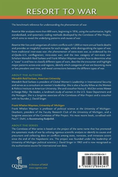This much-anticipated reference book analyzes more than a thousand wars waged from 1816 to 2008 using authoritative, highly standardized, and systematic coding methods from the Correlates of War Project, which aims to reveal the underlying patterns and causes of war. Resort to War * * *