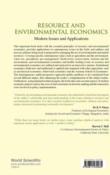 This important book deals with the essential principles of resource and environmental economics, provides applications to contemporary issues in this field, and outlines and assesses policies being used or proposed for managing the use of environmental and natural resources. Covering specific contemporary topics such as agriculture and the environment, water use, greenhouse gas management, biodiversity conservation, tourism and the environment, and environmental economics and health, leading issues in resource and environmental economics are outlined and analyzed in an innovative manner. Institutional economics (both new and traditional) is applied and compared with other approaches such as neoclassical economics, behavioral economics and the Austrian School of Economics. This heterogeneous, multi-perspective approach enables problems to be considered from several different angles, thus enhancing the reader's comprehension of the subject matter. Furthermore, using minimal technical jargon, the book takes into account aspects of modern economic analysis such as the costs of and constraints on decision-making and the transaction costs involved in policy implementation.