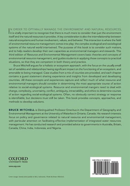 * List of figures * List of tables * List of guest authors * Preface to the third edition * Chapter 1: Challenges and Opportunities * Chapter 2: Visions for the Future: Sustainable Development and Resilience * Chapter 3: Ecosystem Approach * Chapter 4: Governance * Chapter 5: Social Learning, Learning Organizations and Adaptive Environmental Management * Chapter 6: Stakeholders and Partnerships * Chapter 7: Alternative Dispute Resolution * Chapter 8: Assessing Alternatives * Chapter 9: Applying Business Perspectives * Chapter 10: Implementation * Chapter 11: Monitoring and Evaluation * Chapter 12: Moving Forward * Further Readings * Glossary