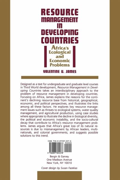 Designed as a text for undergraduate and graduate level courses in Third World development, Resource Management in Developing Countries takes an interdisciplinary approach to the problem of resource management in developing countries. Focusing on Africa, James explains the reasons for the continent's declining resource base from historical, geographical, economic, and political perspectives, and illustrates the links among all these factors. He explores key resource management issues such as threats to ecological systems, water quality management and agricultural production, using case studies where appropriate to illustrate the decline in biological diversity and human potential, the political and economic instability, and the socio-cultural decay that contribute to Africa's resource management problems. James argues that Africa's great loss of natural resources is due to mismanagement by African leaders, multinationals, and colonial governments, and suggests possible solutions to this declining trend. The introductory chapter examines Africa's legacy of colonialism. The author next addresses threats to the continent's ecological systems and the impact of transnational firms on resource management. After describing specific resource bases: water, soils, river systems, and forests, James then compares and contrasts Africa's urban and rural differences-- using Nigeria as a case example. Subsequent chapters discuss the need for proper resource management, perceptions of resource management problems in Africa, likely future scenarios, and the resource management programs currently underway in Africa. James concludes that governments and private and international organizations must assist the African countries in efforts to save endangered species, protect forest and other resources, and provide an acceptable standard of living for the people. Students of planning, as well as policymakers in developing countries, will find this comprehensive treatment of the ecological consequences of various resource management policies in the Third World very informative.