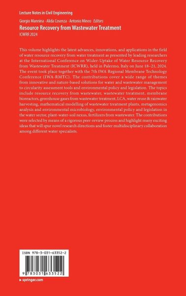 This volume highlights the latest advances, innovations, and applications in the field of water resource recovery from water treatment as presented by leading researchers at the International Conference on Wider-Uptake of Water Resource Recovery from Wastewater Treatment (ICWRR), held in Palermo, Italy on June 18-21, 2024. The event took place together with the 7th IWA Regional Membrane Technology Conference (IWA-RMTC). The contributions cover a wide range of themes from innovative and nature-based solutions for water and wastewater management to circularity assessment tools and environmental policy and legislation. The topics include resource recovery from wastewater, wastewater treatment, membrane bioreactors, greenhouse gases from wastewater treatment, LCA, water reuse & rainwater harvesting, mathematical modelling of wastewater treatment plants, metagenomics analysis and environmental microbiology, environmental policy and legislation in the water sector, plant-water-soil nexus, fertilizers from wastewater. The contributions were selected by means of a rigorous peer-review process and highlight many exciting ideas that will spur novel research directions and foster multidisciplinary collaboration among different water specialists.