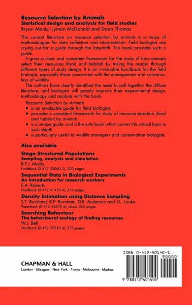 We have written this book as a guide to the design and analysis of field studies of resource selection, concentrating primarily on statistical aspects of the comparison of the use and availability of resources of different types. Our in tended audience is field ecologists in general and wildlife biologists in particular who are attempting to measure the extent to which real animal populations are selective in their choice of food and habitat. As such, we have made no attempt to address those aspects of theoretical ecology that are concerned with how animals might choose their resources if they acted in an optimal manner. The book is based on the concept of a resource selection function, where this is a function of characteristics measured on resource units such that its value for a unit is proportional to the probability of that unit being used. We argue that this concept leads to a unified theory for the analysis and interpretation of data on resource selection and can replace many ad hoc statistical methods that have been used in the past.