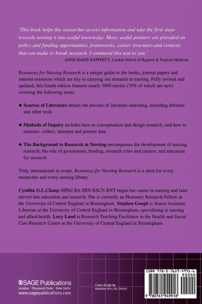 'The 4th edition of this extensive text is an outstanding resource prepared by nurses (and a librarian) for nurses. In a structured and helpful style it presents thousands of items from the literature - published papers, reports, books and electronic resources - as a clear, accessible, and most of all useful collection. The efforts to signpost and lead the reader to the sought-for information are effective and well-conceived, and the "How to use this book" section is remarkably simple...the book should be found in every nursing and health library, every research institute and centre, and close to many career researchers' desks' - RCN Research