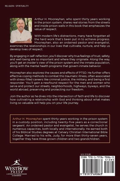 Arthur H. Mooneyhan, who spent thirty years working in the prison system, shares real stories from the streets and inside the prison walls in this book that emphasizes the value of respect. With modern life's distractions, many have forgotten all the hard work that's been put in to achieve progress. Mooneyhan, also an ordained pastor and evangelist, examines the relationships in our lives that cultivate, nurture, and help us develop lives of respect. By engaging in self-reflection, you'll discover why true feelings of trust, safety, and well-being are so important and where they derive. Along the way, you'll get an insider's view of the prison system and the inmate population, along with the mental health programs that govern inmate behavior. Mooneyhan also explores the causes and effects of PTSD. He further offers effective coping methods to combat this traumatic illness, often associated with stress-filled careers like criminal justice, the military, and being a first responder. You'll gain a newfound respect for the men and women who serve and protect our streets, neighborhoods, highways, byways, and the world abroad, preserving and protecting our freedom. Join the author as he dives into the intersection of faith and discover how cultivating a relationship with God and thinking about what makes life so valuable will help you on your life journey.