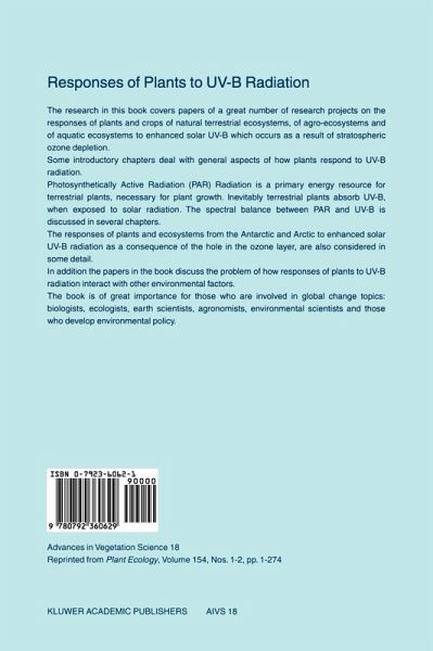 Photosynthetically Active Radiation (PAR) is a primary energy resource for terrestrial plants, necessary for plant growth. Inevitably terrestrial plants absorb UV-B when exposed to solar radiation. The spectral balance between PAR and UV-B is discussed in several chapters. The responses of plants and ecosystems from the Antarctic and Arctic to enhanced solar UV-B radiation as a consequence of the hole in the ozone layer are considered in some detail. In addition the papers in the book discuss the problem of how responses of plants to UV-B radiation interact with other environmental factors.