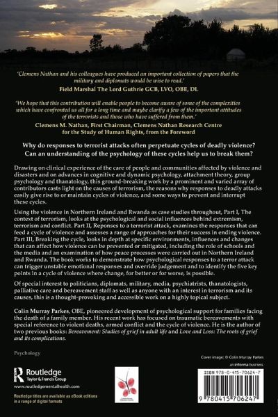 Why do responses to terrorist attacks often perpetuate cycles of deadly violence? Can an understanding of the psychology of these cycles help us to break them? Drawing on clinical experience of the care of people and communities affected by violence and disasters and on advances in cognitive and dynamic psychology, attachment theory, group psychology and thanatology, this ground-breaking work by a prominent and varied array of contributors casts light on the causes of terrorism, the reasons why responses to deadly attacks easily give rise to or maintain cycles of violence and some ways to prevent and interrupt these cycles. Using the violence in Northern Ireland and Rwanda as case studies throughout, Part 1, The Context of Terrorism, looks at the psychological and social influences behind extremism, terrorism and conflict. Part 2, Reponses to a Terrorist Attack, examines the responses that can feed a cycle of violence and assesses a range of approaches for their success in ending violence. Part 3, Breaking the Cycle, looks in depth at specific environments, influences and changes that can affect how violence can be prevented or mitigated, including the role of schools and the media and an examination of how peace processes were carried out in Northern Ireland and Rwanda. The book works to demonstrate how psychological responses to a terror attack can trigger unstable emotional responses and override judgement and to identify the five key points in a cycle of violence where change, for better or for worse, is possible. Ideal for psychiatrists, thanatologists, palliative care and bereavement staff, politicians and journalists as well as anyone with an interest in terrorism and its causes, this is a thought-provoking and accessible work on a highly topical subject.