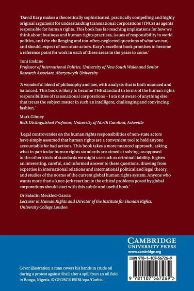 Responsibility for Human Rights provides an original theoretical analysis of which global actors are responsible for human rights, and why. It does this through an evaluation of the different reasons according to which such responsibilities might be assigned: legalism, universalism, capacity and publicness. The book marshals various arguments that speak in favour of and against assigning 'responsibility for human rights' to any state or non-state actor. At the same time, it remains grounded in an incisive interpretation of the world we actually live in today, including: the relationship between sovereignty and human rights, recent events in 'business and human rights' practice, and key empirical examples of human rights violations by companies. David Karp argues that relevantly public actors have specific human rights responsibility. However, states can be less public, and non-state actors can be more public, than might seem apparent at first glance.