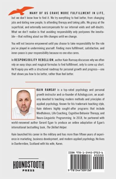 Many of us crave more fulfillment in life, but we don't know how to find it. We try everything to feel better, from changing jobs and dating new people, to attending therapy and taking pills. We grasp at the superficial, and externally overcompensate for our internal voids and self-doubts. What we don't realize is that avoiding responsibility only postpones the inevitable-that nothing about our life changes until we change. You will not become empowered until you choose to take responsibility for the role you've played in undermining yourself. Finding more fulfillment, satisfaction, and inner-peace is your responsibility because no one else cares. In Responsibility Rebellion, author Kain Ramsay discusses why we often rely on easy steps and magical formulas to find fulfillment, only to come up short. He'll equip you with a structured roadmap for personal growth and progress-one that shows you how to be better, rather than feel better.