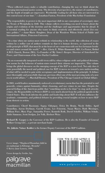 "In an economically integrated world riven still by ethno-religious strife and political divisions, new norms for the behavior of nation-states toward their citizens are imperative. The volume edited by Richard H. Cooper and Juliette VoInov Kohler brings the global discourse on the emerging concept of the responsibility to protect to a new level. Not only does it state powerfully the moral and political case for R2P, it moves us toward a new understanding of what will be needed to gain wider acceptance and implementation of the principle. It defines more thoroughly and powerfully than any previous effort one of the most pressing tasks of a new era in world affairs." - Marshall Bouton, President, Chicago Council on Global Affairs
