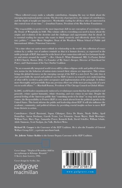 "In an economically integrated world riven still by ethno-religious strife and political divisions, new norms for the behavior of nation-states toward their citizens are imperative. The volume edited by Richard H. Cooper and Juliette VoInov Kohler brings the global discourse on the emerging concept of the responsibility to protect to a new level. Not only does it state powerfully the moral and political case for R2P, it moves us toward a new understanding of what will be needed to gain wider acceptance and implementation of the principle. It defines more thoroughly and powerfully than any previous effort one of the most pressing tasks of a new era in world affairs." - Marshall Bouton, President, Chicago Council on Global Affairs