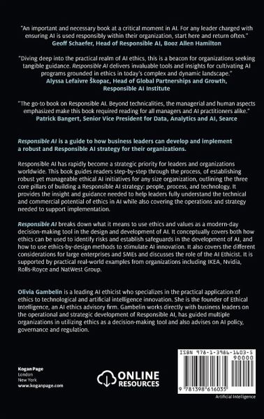 Responsible AI is a guide to how business leaders can develop and implement a robust and responsible AI strategy for their organizations. Responsible AI has rapidly transitioned to a strategic priority for leaders and organizations worldwide. Responsible AI guides readers step-by-step through the process of establishing robust yet manageable ethical AI initiatives for any size organization, outlining the three core pillars of building a responsible AI strategy: people, process and technology. It provides the insight and guidance needed to help leaders fully understand the technical and commercial potential of ethics in AI while also covering the operations and strategy needed to support implementation. Responsible AI breaks down what it means to use ethics and values as a modern-day decision-making tool in the design and development of AI. It conceptually covers both how ethics can be used to identify risks and establish safeguards in the development of AI and how to use ethics-by-design methods to stimulate AI innovation. It also covers the different considerations for large enterprises and SMEs and discusses the role of the AI ethicist. It is supported by practical case studies from organizations such as IKEA, Nvidia, Rolls-Royce and NatWest Group.