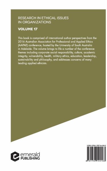 The volume brings to life a number of the conference themes including corporate social responsibility, culture, academic integrity, vulnerability, health, military ethics, education, leadership, sustainability and philosophy and addresses concerns of many leading applied ethicists.