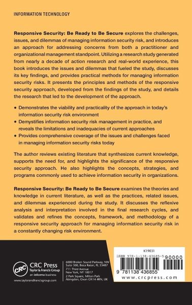 Exploring the challenges, issues, and dilemmas of managing information security risk, this volume introduces an approach for addressing concerns from both a practitioner and organizational management standpoint. Utilizing a research study generated from nearly a decade of action research and real-time experience, the book discusses the issues and dilemmas that fueled the study, examines its key findings, and provides practical methods for managing information security risks. It presents the principles and methods of the responsive security approach, developed from the findings of the study, and details the research that led to the development of the approach.