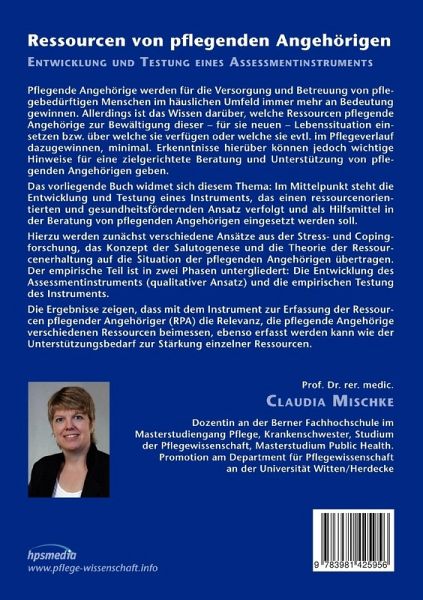 Pflegende Angehörige werden für die Versorgung und Betreuung von pflegebedürftigen Menschen im häuslichen Umfeld immer mehr an Bedeutung gewinnen. Allerdings ist das Wissen darüber, welche Ressourcen pflegende Angehörige zur Bewältigung dieser ¿ für sie neuen ¿ Lebenssituation einsetzen bzw. über welche sie verfügen oder welche sie evtl. im Pflegeverlauf dazugewinnen, minimal. Erkenntnisse hierüber können jedoch wichtige Hinweise für eine zielgerichtete Beratung und Unterstützung von pflegenden Angehörigen geben. Das vorliegende Buch widmet sich diesem Thema: Im Mittelpunkt steht die Entwicklung und Testung eines Instruments, das einen ressourcenorientierten und gesundheitsfördernden Ansatz verfolgt und als Hilfsmittel in der Beratung von pflegenden Angehörigen eingesetzt werden soll. Hierzu werden zunächst verschiedene Ansätze aus der Stress- und Copingforschung, das Konzept der Salutogenese und die Theorie der Ressourcenerhaltung auf die Situation der pflegenden Angehörigen übertragen. Der empirische Teil ist in zwei Phasen untergliedert: Die Entwicklung des Assessmentinstruments (qualitativer Ansatz) und die empirischen Testung des Instruments. Die Ergebnisse zeigen, dass mit dem Instrument zur Erfassung der Ressourcen pflegender Angehöriger (RPA) die Relevanz, die pflegende Angehörige verschiedenen Ressourcen beimessen, ebenso erfasst werden kann wie der Unterstützungsbedarf zur Stärkung einzelner Ressourcen.