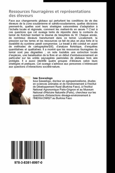 Face aux changements globaux qui perturbent les conditions de vie des éleveurs de la zone soudanienne et sahélo-soudanienne, quelles décisions prennent-ils, quelles sont leurs stratégies saisonnières d adaptation à l échelle locale et régionale, comment les mettent-ils en uvre ? C est à ces questions que cet ouvrage tente de répondre dans le contexte du terroir de Kotchari bordant la réserve de biosphère du W. Chaque année, de nombreux éleveurs transhument dans ce terroir. Localement, la pression sur les terres et les ressources se fait de plus en plus forte et la durabilité du système paraît compromise. Le travail a été conduit en usant de méthodes de cartographie/SIG, d analyse floristique, d enquêtes quantitatives et qualitatives. Il a montré que les ressources fourragères du terroir sont peu dégradées ; on note toutefois une extinction locale d espèces, une banalisation de la flore et un début d embuissonnement en particulier sur les unités paysagères pastorales de plateaux hors aire protégée. Il a aussi identifié quatre groupes d éleveurs selon leurs stratégies et pratiques. Cet ouvrage s adresse aux personnes s intéressant aux questions d interactions société-nature.