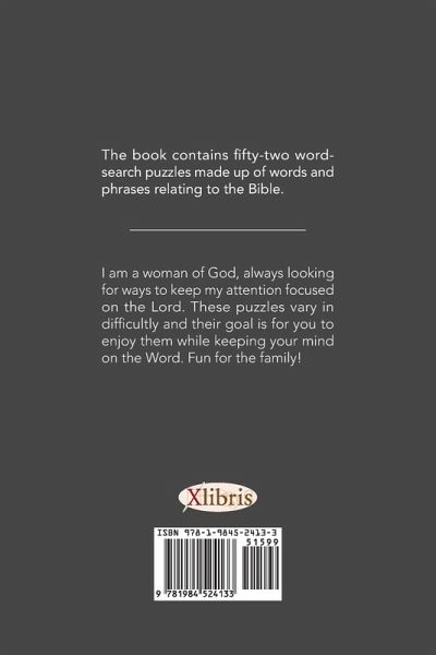 The book contains fifty-two word-search puzzles made up of words and phrases relating to the Bible.