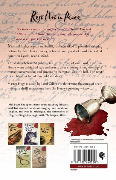 Master Hugh is asked to provide a sleeping potion for Sir Henry Burley, a friend and guest of Lord Gilbert at Bampton Castle. Sir Henry, (with his wife, a daughter by a first wife, two knights, two squires, and assorted servants), has outstayed his welcome at Bampton Castle. The next morning after Master Hugh provides the potion, Sir Henry is found dead, eyes open, in his bed. Master Hugh, the target of the wife's wrath, is asked by Lord Gilbert to determine the cause of death ...