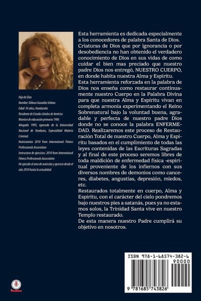 Esta herramienta es dedicada especialmente a los conocedores de palabra Santa de Dios. Criaturas de Dios que por ignorancia o por desobediencia no han obtenido el verdadero conocimiento de Dios en sus vidas de como cuidar el bien mas preciado que nuestro padre Dios nos entregó, NUESTRO CUERPO, en donde habita nuestra Alma y Espíritu. Esta herramienta reforzada en la palabra de Dios nos enseña como restaurar continuamente nuestro Cuerpo en la Palabra Divina para que nuestra Alma y Espíritu vivan en completa armonía experimentando el Reino Sobrenatural bajo la voluntad buena, agradable y perfecta de nuestro padre Dios donde no se conoce la palabra ENFERMEDAD. Realizaremos este proceso de Restauración Total de nuestro Cuerpo, Alma y Espiritu basados en el cumplimiento de todas las leyes contenidas de las Escrituras Sagradas y al final de este proceso seremos libres de toda maldición de enfermedad física -espiritual proveniente de los infiernos con sus diversos nombres de demonios como canceres, diabetes, angustias, depresión, miedos, etc. Restaurados totalmente en cuerpo, Alma y Espíritu, con el carácter del cielo pondremos bajo nuestros pies a satanás, pues ya no estamos solos, la Trinidad Santa vive en nuestro Templo restaurado. De esta manera nuestro Padre cumplirá su objetivo en nosotros.
