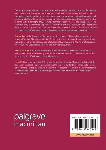 This book explores the paradox of the hospitality industry: customers demand not only personal and innovative tourism products and services, but also cost-effective ones. Enterprises have the option to meet the former demand by offering authentic products and services while the latter could be achieved through standardization. Although it seems ideal to combine both concepts, they seemingly contradict each other leading to suppliers facing an authenticity-standardization paradox. The authors identify, analyze, and provide solutions for this authenticity-standardization paradox based on a series of case studies of restaurants in China. This book will be of interest to scholars, business owners, and consultants.