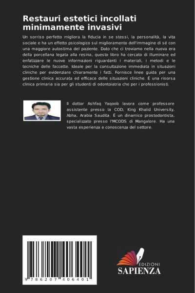 Un sorriso perfetto migliora la fiducia in se stessi, la personalità, la vita sociale e ha un effetto psicologico sul miglioramento dell'immagine di sé con una maggiore autostima del paziente. Dato che ci troviamo nella nuova era della porcellana legata alla resina, questo libro ha cercato di illuminare ed enfatizzare le nuove informazioni riguardanti i materiali, i metodi e le tecniche delle faccette. Ideale per la consultazione immediata in situazioni cliniche per evidenziare chiaramente i fatti. Fornisce linee guida per una gestione clinica accurata ed efficace delle situazioni cliniche. È una risorsa clinica primaria sia per gli studenti di odontoiatria che per i professionisti.