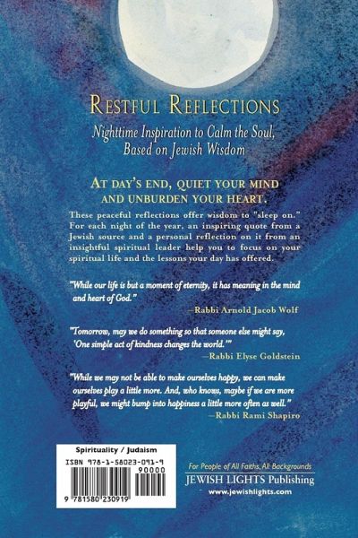 These peaceful reflections offer wisdom to "sleep on." For each night of the year, an inspiring quotation from a Jewish source and a personal reflection on it from an insightful spiritual leader to help you quiet your mind and unburden your heart.