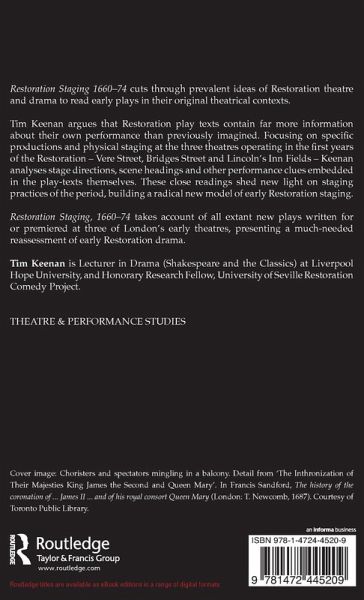 Arguing that early Restoration theatre and drama is misunderstood, owing to critical and theatrical neglect, this book cuts through received notions by reading the plays in their original theatrical contexts. Tim Keenan proposes that Restoration play texts encode more information about their own performance than has hitherto been recovered. Considering the play texts as corpora centred on production at the first Restoration theatres, he sheds new light on period staging practices.