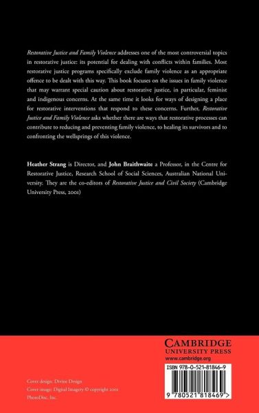 This 2002 book addresses one of the most controversial topics in restorative justice: its potential for dealing with conflicts within families. Most restorative justice programs specifically exclude family violence as an appropriate offence to be dealt with this way. This book focuses on the issues in family violence that may warrant special caution about restorative justice, in particular, feminist and indigenous concerns. At the same time it looks for ways of designing a place for restorative interventions that respond to these concerns. Further, it asks whether there are ways that restorative processes can contribute to reducing and preventing family violence, to healing its survivors and to confronting the wellsprings of this violence. The book discusses the shortcomings of the present criminal justice response to family violence. It suggests that these shortcomings require us to explore other ways of addressing this apparently intractable problem.