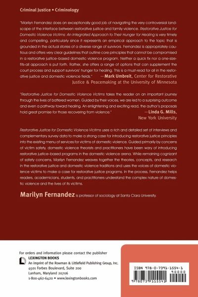 Using both qualitative and quantitative data and methodologies, Restorative Justice for Domestic Violence Victims illuminates the complex nature of intimate partner violence and of its victims' lives. In the process, Marilyn Fernandez makes a convincing case for introducing restorative justice principled programs in the domestic violence arena and pushes the boundaries of existing theoretical and service models for domestic violence.