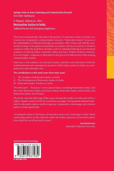 India has a rich tradition of restorative justice, and this work introduces both the traditional basis and contemporary practices of this justice system in India, in a comprehensive and systematic way.