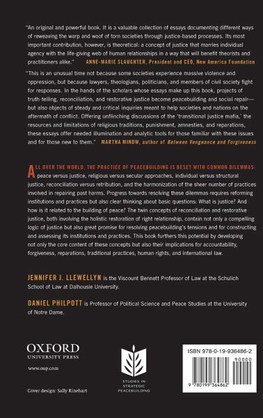 All over the world the practice of peacebuilding is beset with common dilemmas: peace versus justice, religious versus secular approaches, individual versus structural justice, reconciliation versus retribution, and the harmonization of the sheer multiplicity of practices involved in repairing past harms. Progress towards the resolution of these dilemmas requires far more than reforming institutions and practices but rather clear thinking about the more basic questions: What is justice? And how is it related to the building of peace? The twin concepts of reconciliation and restorative justice, both involving the holistic restoration of right relationship, contain not only a compelling logic of justice but also great promise for resolving peacebuilding's tensions and for constructing and assessing its institutions and practices. This volume furthers this potential by developing not only the core content of these concepts but also their implications for accountability, forgiveness, reparations, traditional practices, human rights, and international law. While the volume's central orientation is theory, it contains much of interest to a wide range of scholars as well as practitioners. It is both interdisciplinary and accessibly written. It situates its analysis in countries as diverse as South Africa, El Salvador, Canada, and East Timor and in the work of institutions and communities such as the United Nations, the Catholic Church, various indigenous communities, and the international law community. It contains essays by leading scholars of restorative justice, international law, transitional justice, political philosophy and theology.