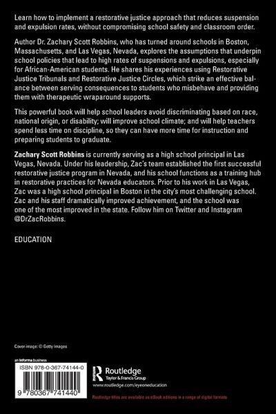 Learn how to implement a restorative justice approach that reduces suspension and expulsion rates, without compromising school safety and classroom order. Author Dr. Zachary Scott Robbins, who has turned around schools in Boston, Massachusetts, and Las Vegas, Nevada, explores the assumptions that underpin school policies that lead to high rates of suspensions and expulsions, especially for African-American students. He shares his experiences using Restorative Justice Tribunals and Restorative Justice Circles, which strike an effective balance between serving consequences to students who misbehave and providing them with therapeutic wraparound supports. This powerful book will help school leaders avoid discriminating based on race, national origin, or disability; will improve school climate; and will help teachers spend less time on discipline, so they can have more time for instruction and preparing students to graduate.