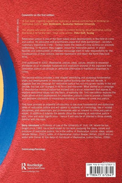 First published in 2002, Restorative Justice: Ideas, Values, Debates is renowned worldwide as an accessible, balanced and invaluable analysis of the argument that restorative justice can provide an attractive alternative to traditional responses to crime.