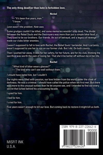 The only thing deadlier than hate is forbidden love. Nickel -"It's been five years, man." "I know." Love wasn't the problem. Hate was. Some grudges couldn't be killed, and some memories wouldn't stay dead. The divide between the Rebel Souls and the Destroyers was more than just a simple biker feud. They used to be our brothers. Our friends. An act of betrayal, and a legacy of revenge made our clubs bitter enemies. I wasn't supposed to fall in love with Rachel, the Rebel Souls' bartender. And I certainly wasn't supposed to use her to spy on our former club. But I did. On both counts. Then I…mehr