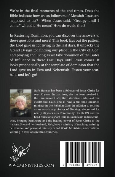 It's the Last Days. But, how, as Christians, should we continued to "fight the good fight" and have victory over the enemy of our souls? Dominion is all about what Jesus said to do: "Occupy until I come." In this book you will find the answers to so many questions we have today, like how did we get in this mess? How do we position ourselves for victory? And, most importantly, how do we pray in a way that will bring Heaven to earth? Buckle your seatbelt and let's get started!