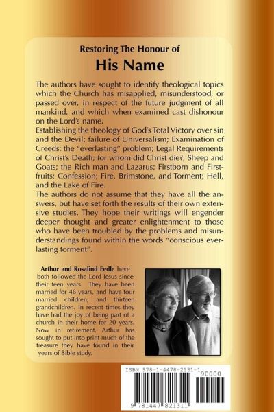 The authors have sought to identify theological topics which the Church has misapplied, misunderstood, or passed over, in respect of the future judgment of all mankind, and which when examined cast dishonour on the Lord's name. Establishing the theology of God's Total Victory over sin and the Devil; failure of Universalism; Examination of Creeds; the "everlasting" problem; Legal Requirements of Christ's Death; for whom did Christ die?; Sheep and Goats; the Rich man and Lazarus; Firstborn and Firstfruits; Confession; Fire, Brimstone, and Torment; Hell, and the Lake of Fire. The authors do not assume that they have all the answers, but have set forth the results of their own extensive studies. They hope their writings will engender deeper thought and greater enlightenment to those who have been troubled by the problems and misunderstandings found within the words "conscious everlasting torment".