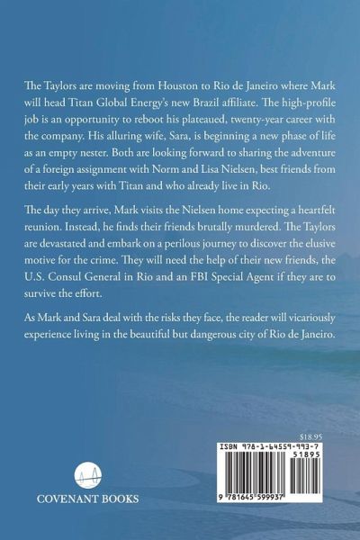The Taylors are moving from Houston to Rio de Janeiro where Mark will head Titan Global Energy's new Brazil affiliate. The high-profile job is an opportunity to reboot his plateaued, twenty-year career with the company. His alluring wife, Sara, is beginning a new phase of life as an empty nester. Both are looking forward to sharing the adventure of a foreign assignment with Norm and Lisa Nielsen, best friends from their early years with Titan and who already live in Rio. The day they arrive, Mark visits the Nielsen home expecting a heartfelt reunion. Instead, he finds their friends brutally murdered. The Taylors are devastated and embark on a perilous journey to discover the elusive motive for the crime. They will need the help of their new friends, the U.S. Consul General in Rio and an FBI Special Agent if they are to survive the effort. As Mark and Sara deal with the risks they face, the reader will vicariously experience living in the beautiful but dangerous city of Rio de Janeiro.