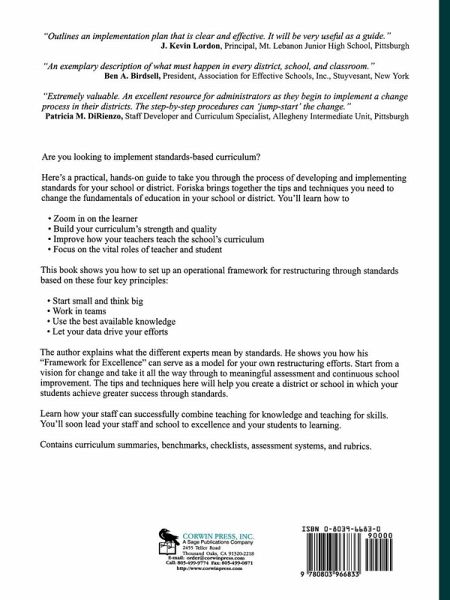 There is much debate about and interest in the development of academic standards. However, there is little agreement on what the standards are, or even what the term `standards' represents. This book explains in clear language exactly what different experts mean by standards. The author then lays out a simple framework and step-by-step process to develop and implement standards for the students in schools.