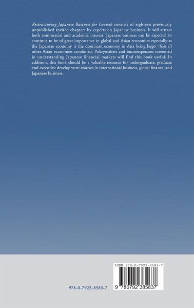 Restructuring Japanese Business for Growth consists of eighteen previously unpublished invited chapters by experts on Japanese business. It will attract both commercial and academic interest. Japanese business can be expected to continue to be of great importance in global and Asian economics, especially as the Japanese economy is the dominant economy in Asia, being larger than all other Asian economies combined. Policymakers and business people interested in understanding Japanese financial markets will find this book useful. In addition, this book should be a valuable resource for undergraduate, graduate, and executive development courses in international business, global finance, and Japanese business.