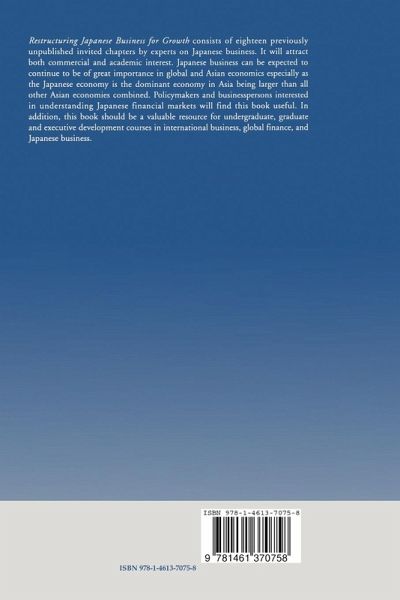 Restructuring Japanese Business for Growth consists of eighteen previously unpublished invited chapters by experts on Japanese business. It will attract both commercial and academic interest. Japanese business can be expected to continue to be of great importance in global and Asian economics, especially as the Japanese economy is the dominant economy in Asia, being larger than all other Asian economies combined. Policymakers and business people interested in understanding Japanese financial markets will find this book useful. In addition, this book should be a valuable resource for undergraduate, graduate, and executive development courses in international business, global finance, and Japanese business.