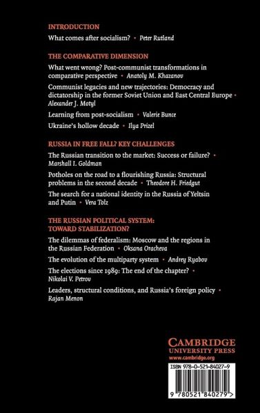Since the fall of the Soviet Union in 1991, the question of 'whither Russia?' has been the source of ceaseless speculation both at home and abroad. In search of answers, twelve highly qualified scholars examine the complex interplay between continuity and change that has marked developments in Russia under the leadership first of Boris Yeltsin and now of Vladimir Putin. Analsying the recent past, they also peer into the country's future. In his introduction to the volume Peter Rutland asks whether we are witnessing the gradual entrenchment of parliamentary democracy, the slow return to autocracy or mere political stagnation. Restructuring Post-Communist Russia poses the fundamental questions while providing the information and analysis needed to give the (at least, preliminary) answers.