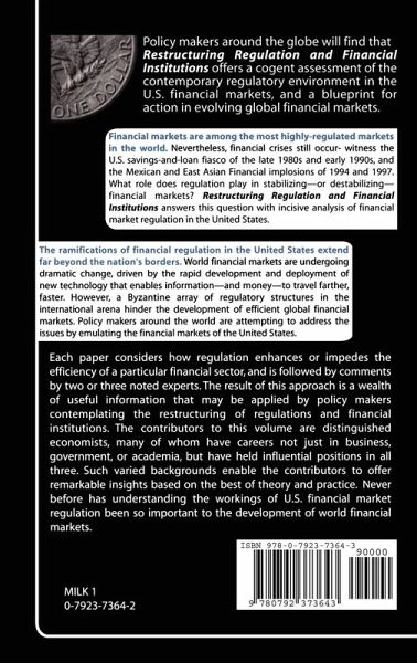 Financial markets are among the most highly-regulated markets in the world. Nevertheless, financial crises still occur, witness the U.S. savings-and-loan fiasco of the late 1980s and early 1990s, and the Mexican and East Asian Financial implosions of 1994 and 1997. What role does regulation play in stabilizing-or-destabilizing financial markets? Restructuring Regulation and Financial Institutions answers this question with incisive analysis of financial market regulation in the United States.