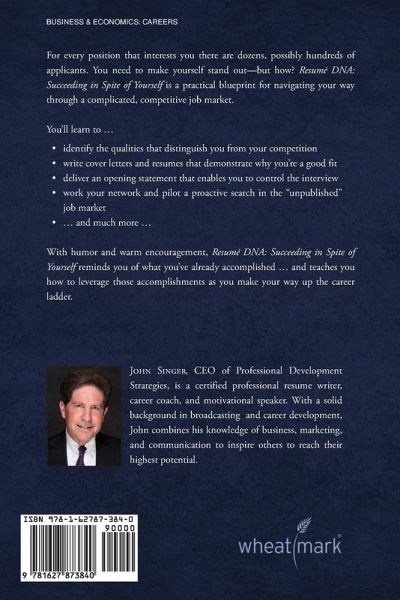 For every position that interests you there are dozens, possibly hundreds of applicants. You need to make yourself stand out -- but how? Resume DNA: Succeeding in Spite of Yourself is a practical blueprint for navigating your way through a complicated, competitive job market. You'll learn to identify the qualities that distinguish you from your competition, write cover letters and resumes that demonstrate why you're a good fit, deliver an opening statement that enables you to control the interview, work your network and pilot a proactive search in the "unpublished" job market, and much more. With humor and warm encouragement, Resume DNA: Succeeding in Spite of Yourself reminds you of what you've already accomplished . . . and teaches you how to leverage those accomplishments as you make your way up the career ladder.