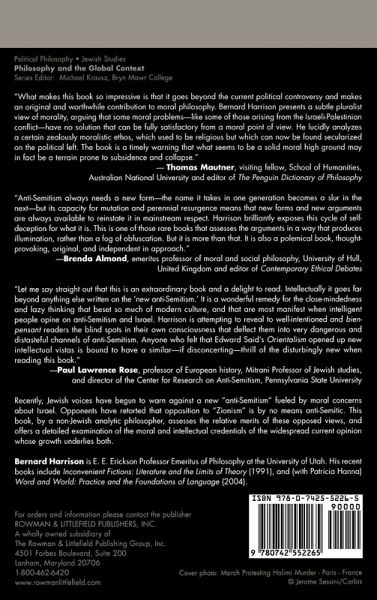 Astonishing...a thorough examination of those forms of anti-Israel and anti-Zionist polemic which skirt close to, and frequently cross over into, political anti-Semitism...This is a powerful, explosive book. Read it from cover to cover. Now and again you will need to deploy the arguments it so cogently presents you with, the ones you always knew were there but could not produce for yourself. We needed it. A non-Jew has provided it. The Jewish Chronicle, USA, (Uk) What makes this book so impressive is that it goes beyond the current political controversy and makes an original and worthwhile contribution to moral philosophy. Harrison presents a subtle pluralist view of morality, arguing that some moral problems-like some of those arising from the Israeli-Palestinian conflict-have no solution that can be fully satisfactory from a moral point of view. He lucidly analyzes a certain zealously moralistic ethos, which used to be religious but which can now be found secularized on the political left. The book is a timely warning that what seems to be a solid moral high ground may in fact be a terrain prone to subsidence and collapse. -- Thomas Mautner, Visiting Fellow, School of Humanities, Australian National University and editor of The Penguin Dictionary of Philosophy I write as a long-time leftist, writer on Marxist theory, and charter member of the New Left. Harrison brings a precise philosopher's intelligence to the vexing, frightening, and at times disgusting phenomenon of left-wing anti-semitism. If his history is at times one-sided and his account of the left simplistic, he has nailed the many failures of left moral clarity and intellectual imagination. If you've ever wondered why and how seemingly liberal, left, anti-racist, nice people can hold such distorted views on Israel, this is an excellent book for you. If you think of yourself as progressive and think Israel has no right to exist, or is the sole cause of the conflict, you'd better read it immediately. -- Roger Gottlieb Let me say straight out that this is an extraordinary book and a delight to read. Intellectually it goes far beyond anything else written on the "New Anti-Semitism." It is a wonderful remedy for the close-mindedness and lazy thinking that beset so much of modern culture, and that are most manifest when intelligent people opinionate about anti-Semitism and Israel. Harrison is attempting to reveal to well-intentioned and bien-pensant readers the blind spots in their own consciousness which deflect them into very dangerous and distasteful channels of anti-Semitism. Anyone who felt that Edward Said's Orientalism opened up new intellectual vistas is bound to have a similar - if disconcerting - thrill of the disturbingly new when reading this book. -- Paul Lawrence Rose, Professor of European History, Mitrani Professor of Jewish Studies, and Director of the Center for Research on Anti-Semitism, Pe By bringing the gifts of analytic philosophy and moral passion to bear on the antisemitism of liberals, Bernard Harrison, like George Eliot before him, has revealed the link between bad reasoning - vilification and canard - and its violent consequences. The Resurgence of Antisemitism is an admirable work of heroic conscience, and merits the attention of every open and honest mind. -- Cynthia Ozick, critically acclaimed novelist and essayist Anti-Semitism always needs a new form - the name it takes in one generation becomes a slur in the next, but its capacity for mutation and perennial resurgence means that new forms and new arguments are always available to reinstate it in mainstream respect. Harrison brilliantly exposes this cycle of self-deception for what it is. This is one of those rare books that assesses the arguments in a way that produces illumination, rather than a fog of obfuscation. But it is more than that. It is also a polemical book, thought-provoking, original, and independent in approach. -- Brenda Almond, Emeritus Professor of Moral and Social Philosophy, University of Hull, United Kingdom and Editor of Contemporary Ethical Deba Bernard Harrison, a philosophy professor at the University of Utah, has done something unusual. In today's climate of fearful academic inquiry, which often wavers between conspiracy theories and a refusal to acknowledge harmful trends, Harrison has written a sane, balanced book on the growing anti-Semitism in Left-influenced liberal circles. Jerusalem Post Outlining a precise boundary between anti-semitism and legitimate criticism of Israeli policies, the author demonstrates, through critical analysis of liberal literature and commentaries, that the Left's articulation of moral indignation verges on-if it is not rooted in-an anti-semitism that has a long, bloody history. Recommended. -- M.F. Nefsky, University of Lethbridge CHOICE Bernard Harrison has brought talents he honed for 40 years in what he calls 'the amiable sharkpool of analytic philosophy' to brilliantly dissect the anti-Semitism currently purveyed by the left. An elegant stylist, Harrison is deadly in shredding the claims of the exponents of the new anti-Semitism. Harrison is superb dissecting the meretricious reasoning characteristic of anti-Semitism, the internal contradictions, the incoherence, and the evasion of contradictory evidence. -- Rael Jean Isaac, Mercy College Springer