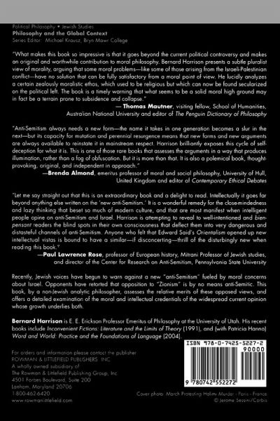 Astonishing...a thorough examination of those forms of anti-Israel and anti-Zionist polemic which skirt close to, and frequently cross over into, political anti-Semitism...This is a powerful, explosive book. Read it from cover to cover. Now and again you will need to deploy the arguments it so cogently presents you with, the ones you always knew were there but could not produce for yourself. We needed it. A non-Jew has provided it. The Jewish Chronicle, USA, (Uk) What makes this book so impressive is that it goes beyond the current political controversy and makes an original and worthwhile contribution to moral philosophy. Harrison presents a subtle pluralist view of morality, arguing that some moral problems-like some of those arising from the Israeli-Palestinian conflict-have no solution that can be fully satisfactory from a moral point of view. He lucidly analyzes a certain zealously moralistic ethos, which used to be religious but which can now be found secularized on the political left. The book is a timely warning that what seems to be a solid moral high ground may in fact be a terrain prone to subsidence and collapse. -- Thomas Mautner, Visiting Fellow, School of Humanities, Australian National University and editor of The Penguin Dictionary of Philosophy I write as a long-time leftist, writer on Marxist theory, and charter member of the New Left. Harrison brings a precise philosopher's intelligence to the vexing, frightening, and at times disgusting phenomenon of left-wing anti-semitism. If his history is at times one-sided and his account of the left simplistic, he has nailed the many failures of left moral clarity and intellectual imagination. If you've ever wondered why and how seemingly liberal, left, anti-racist, nice people can hold such distorted views on Israel, this is an excellent book for you. If you think of yourself as progressive and think Israel has no right to exist, or is the sole cause of the conflict, you'd better read it immediately. -- Roger Gottlieb Let me say straight out that this is an extraordinary book and a delight to read. Intellectually it goes far beyond anything else written on the "New Anti-Semitism." It is a wonderful remedy for the close-mindedness and lazy thinking that beset so much of modern culture, and that are most manifest when intelligent people opinionate about anti-Semitism and Israel. Harrison is attempting to reveal to well-intentioned and bien-pensant readers the blind spots in their own consciousness which deflect them into very dangerous and distasteful channels of anti-Semitism. Anyone who felt that Edward Said's Orientalism opened up new intellectual vistas is bound to have a similar - if disconcerting - thrill of the disturbingly new when reading this book. -- Paul Lawrence Rose, Professor of European History, Mitrani Professor of Jewish Studies, and Director of the Center for Research on Anti-Semitism, Pe By bringing the gifts of analytic philosophy and moral passion to bear on the antisemitism of liberals, Bernard Harrison, like George Eliot before him, has revealed the link between bad reasoning - vilification and canard - and its violent consequences. The Resurgence of Antisemitism is an admirable work of heroic conscience, and merits the attention of every open and honest mind. -- Cynthia Ozick, critically acclaimed novelist and essayist Anti-Semitism always needs a new form - the name it takes in one generation becomes a slur in the next, but its capacity for mutation and perennial resurgence means that new forms and new arguments are always available to reinstate it in mainstream respect. Harrison brilliantly exposes this cycle of self-deception for what it is. This is one of those rare books that assesses the arguments in a way that produces illumination, rather than a fog of obfuscation. But it is more than that. It is also a polemical book, thought-provoking, original, and independent in approach. -- Brenda Almond, Emeritus Professor of Moral and Social Philosophy, University of Hull, United Kingdom and Editor of Contemporary Ethical Deba Bernard Harrison, a philosophy professor at the University of Utah, has done something unusual. In today's climate of fearful academic inquiry, which often wavers between conspiracy theories and a refusal to acknowledge harmful trends, Harrison has written a sane, balanced book on the growing anti-Semitism in Left-influenced liberal circles. Jerusalem Post Outlining a precise boundary between anti-semitism and legitimate criticism of Israeli policies, the author demonstrates, through critical analysis of liberal literature and commentaries, that the Left's articulation of moral indignation verges on-if it is not rooted in-an anti-semitism that has a long, bloody history. Recommended. -- M.F. Nefsky, University of Lethbridge CHOICE Bernard Harrison has brought talents he honed for 40 years in what he calls 'the amiable sharkpool of analytic philosophy' to brilliantly dissect the anti-Semitism currently purveyed by the left. An elegant stylist, Harrison is deadly in shredding the claims of the exponents of the new anti-Semitism. Harrison is superb dissecting the meretricious reasoning characteristic of anti-Semitism, the internal contradictions, the incoherence, and the evasion of contradictory evidence. -- Rael Jean Isaac, Mercy College Springer