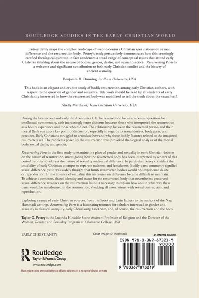 During the late second and early third centuries C.E. the resurrection became a central question for intellectual commentary, with increasingly tense divisions between those who interpreted the resurrection as a bodily experience and those who did not. The relationship between the resurrected person and their mortal flesh was also a key point of discussion, especially in regards to sexual desires, body parts, and practices. Early Christians struggled to articulate how and why these bodily features related to the imagined resurrected self. The problems posed by the resurrection thus provoked theological analysis of the mortal body, sexual desire and gender. Resurrecting Parts is the first study to examine the place of gender and sexuality in early Christian debates on the nature of resurrection, investigating how the resurrected body has been interpreted by writers of this period in order to address the nature of sexuality and sexual difference. In particular, Petrey considers the instability of early Christian attempts to separate maleness and femaleness. Bodily parts commonly signified sexual difference, yet it was widely thought that future resurrected bodies would not experience desire or reproduction. In the absence of sexuality, this insistence on difference became difficult to maintain. To achieve a common, shared identity and status for the resurrected body that nevertheless preserved sexual difference, treatises on the resurrection found it necessary to explain how and in what way these parts would be transformed in the resurrection, shedding all associations with sexual desires, acts, and reproduction. Exploring a range of early Christian sources, from the Greek and Latin fathers to the authors of the Nag Hammadi writings, Resurrecting Parts is a fascinating resource for scholars interested in gender and sexuality in classical antiquity, early Christianity, asceticism, and, of course, the resurrection and t