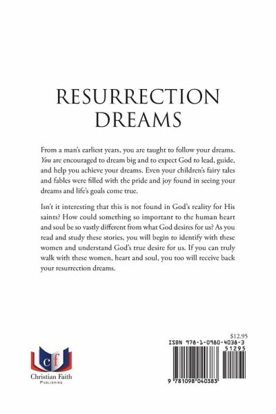From a man's earliest years, you are taught to follow your dreams. You are encouraged to dream big and to expect God to lead, guide, and help you achieve your dreams. Even your children's fairy tales and fables were filled with the pride and joy found in seeing your dreams and life's goals come true. Isn't it interesting that this is not found in God's reality for His saints? How could something so important to the human heart and soul be so vastly different from what God desires for us? As you read and study these stories, you will begin to identify with these women and understand God's true desire for us. If you can truly walk with these women, heart and soul, you too will receive back your resurrection dreams.